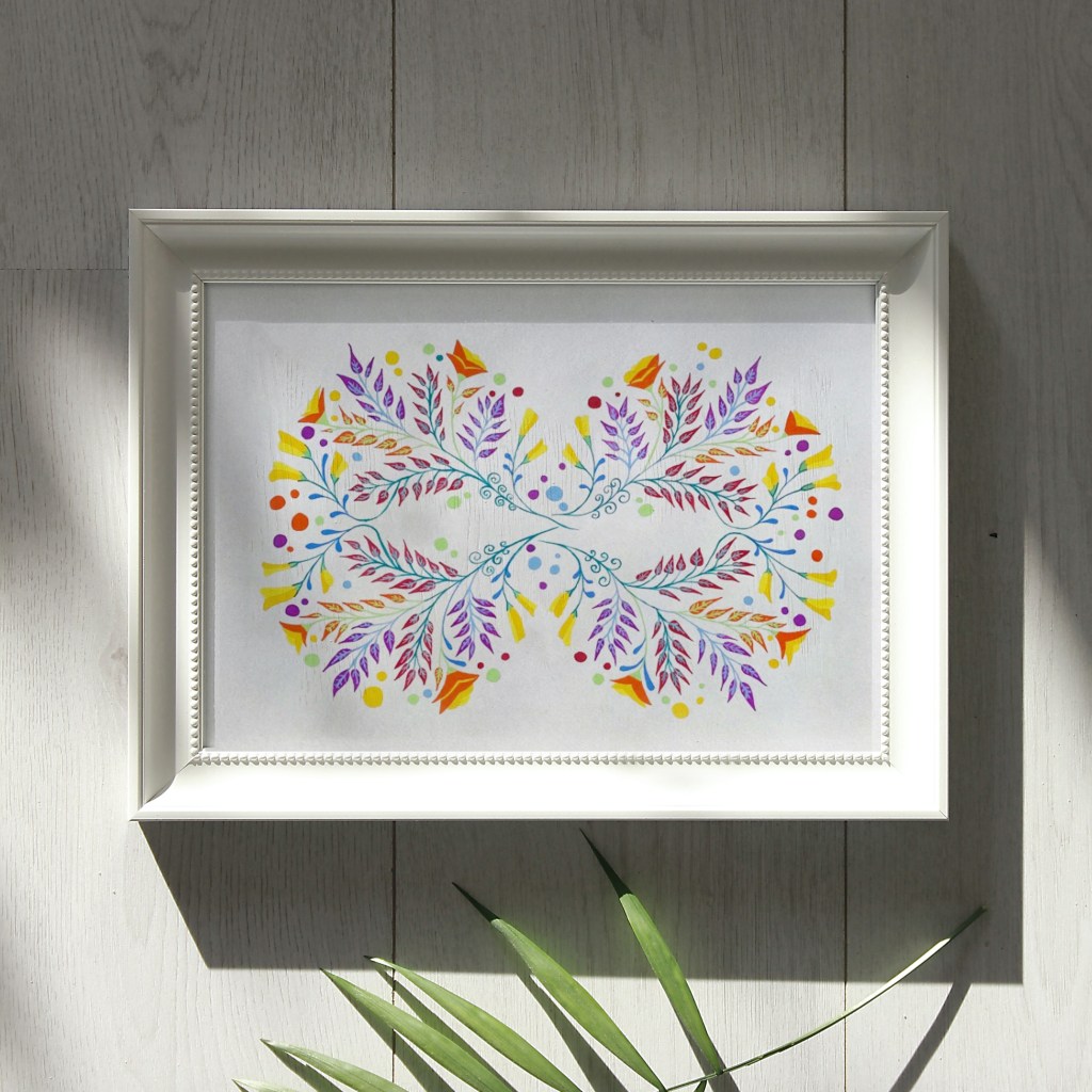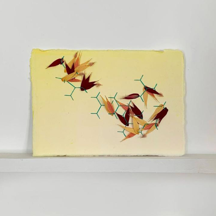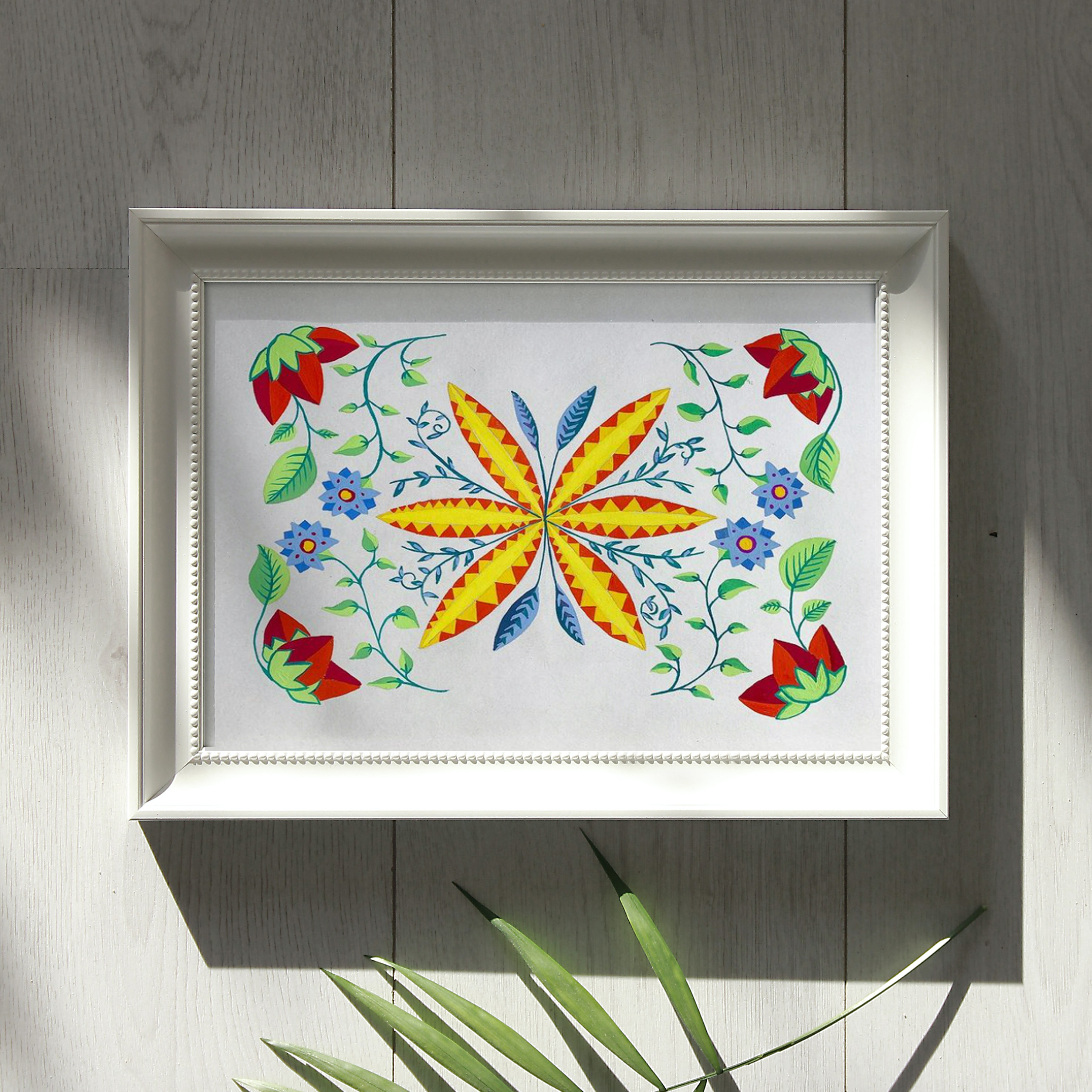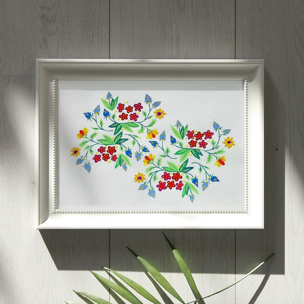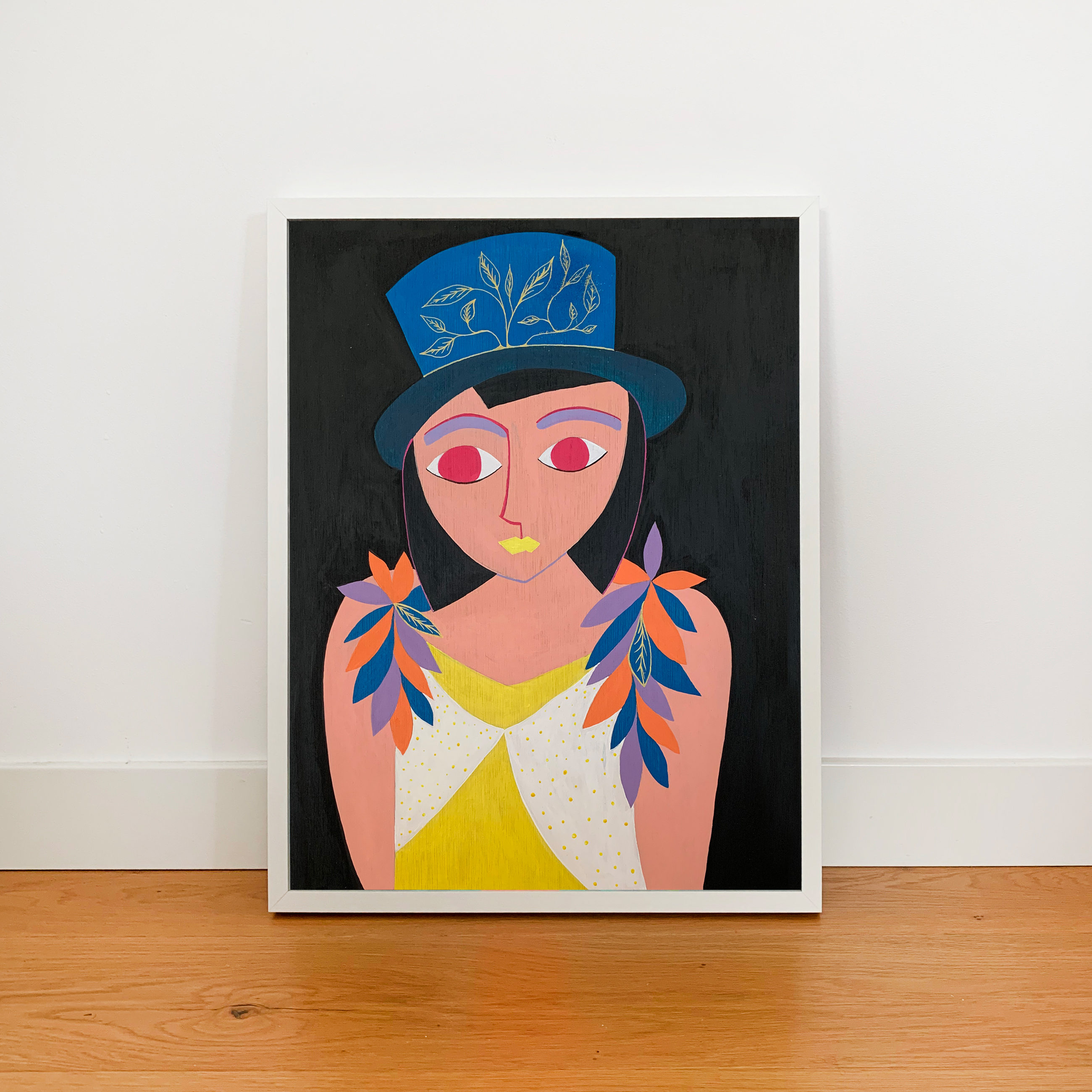 En nuestras piezas mezclamos técnicas y materiales, desde el uso del acrílico, la acuarela, mezclándolo con bordado y utilizando tela o papel.
